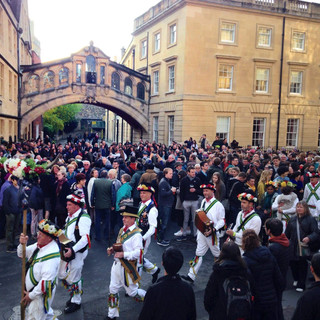 After gathering amongst the crowd on Magdalen Bridge to listen to the choir, we then returned to college, stopping along the way to watch the parade of Morris dancers and bands performing across the city.